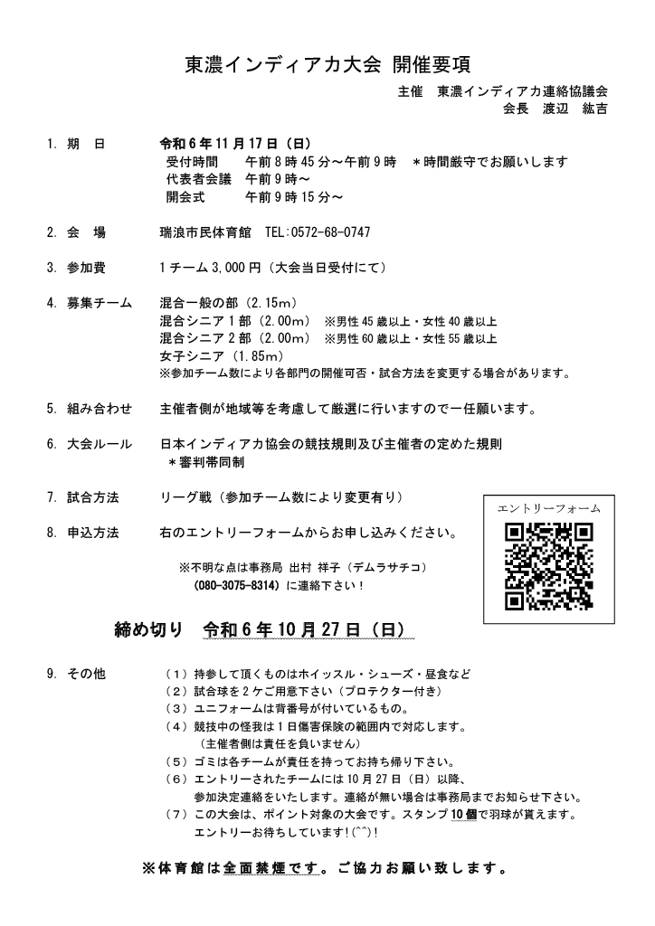 岐阜県の東濃地区(多治見・土岐・瑞浪・恵那・中津川)のインディアカ大会を運営するインディアカ連絡協議会のWEBサイトです
